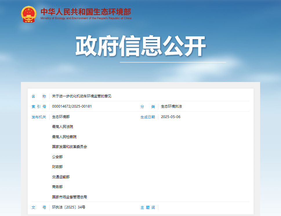 日前,由生态环境部、最高人民法院、最高人民检察院、国家发展和改革委员会等9部门联合编制的《关于进一步优化机动车环境监管的意见》(以下简称《意见》)正式发布,对机动车、特别是货车排放问题的监管做出了更加严格的规定。