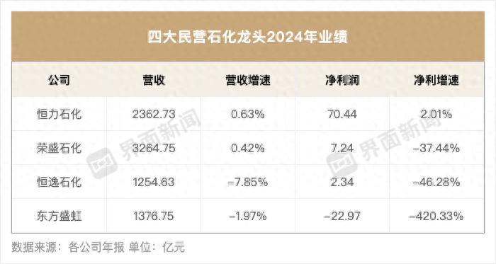 四大民营石化公司2024年业绩均出炉,呈现“一亏一涨两跌”的局面。