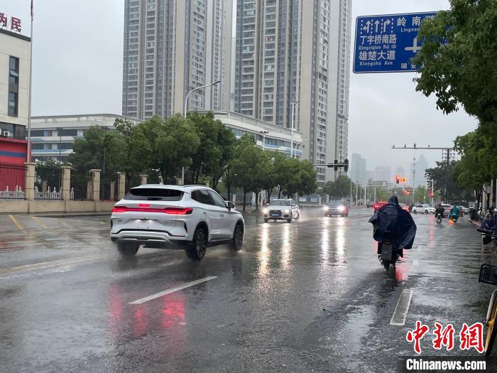 8日上午,武汉出现较强降雨,市民冒雨出行。 马芙蓉 摄