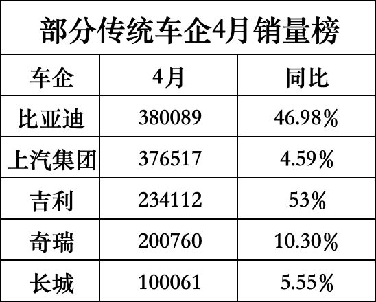 销量数据犹如一面镜子,清晰映照出4月的车市轮廓。