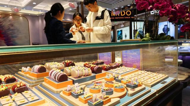 △顾客在选购黄金饰品。(资料图)中新社发 耿玉和 摄