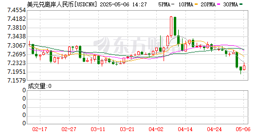 其中,美元兑离岸人民币盘中跌破7.20关口,最低跌破7.19关口,为去年11月以来首次,日内最大跌超200个基点。截至发稿,美元兑离岸人民币暂报7.2025。