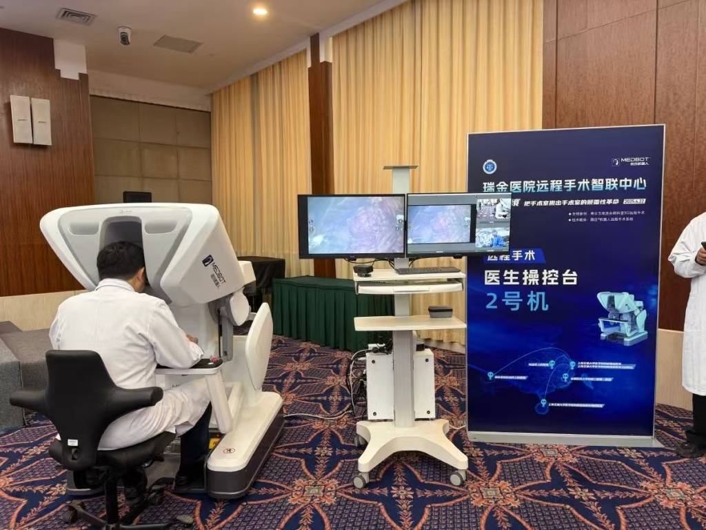 上海瑞金医院医生在院内操控上海产手术机器人,远程为外地患者实施手术。 澎湃新闻记者 陈斯斯 图