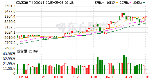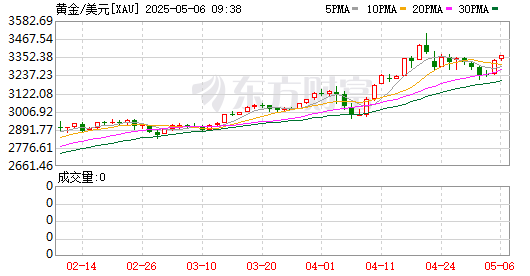 截至北京时间5月5日18:18,纽约黄金期货报3322.4美元/盎司,日内涨幅超2.4%。现货黄金报3313.62美元/盎司,日内涨幅超2.2%。
