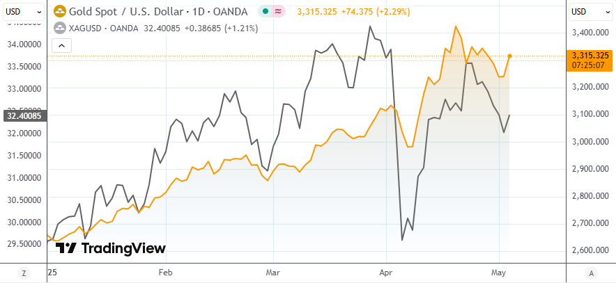 日内,现货黄金价格涨超70美元,现报每盎司3315美元,年初至今累计上涨超26%。4月时,由于地缘政治不确定性和黄金ETF的资金流入,金价一度冲破3500关口。