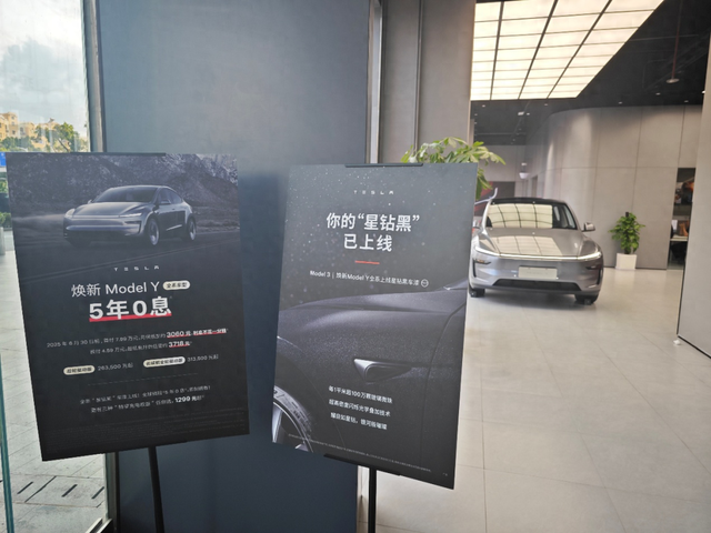 在特斯拉深业上城体验店门口,焕新Model Y“5年0息”的牌子放在最显眼处。特斯拉工作人员向记者表示,这是第一次全系推出“5年0息”活动,“五一”期间买车,首付7.99万元月供可以低至3060元,活动持续到6月底。上述工作人员表示:“新款车(焕新Model Y)的优惠出来之后对客流量有拉动,最近门店客流量有明显提升。”