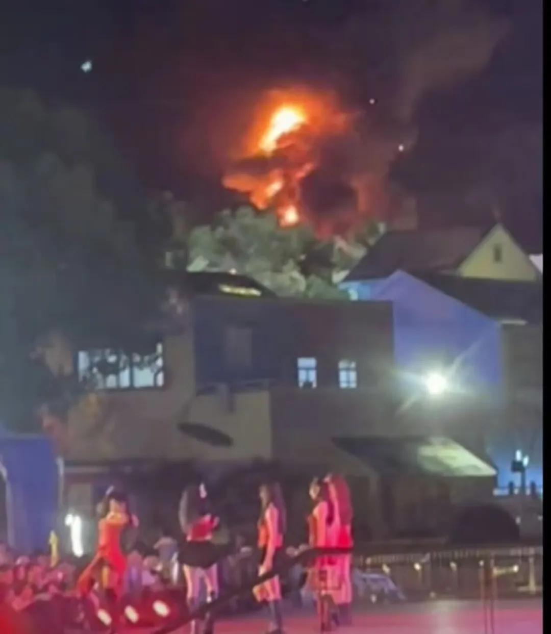 多位游客在网上发布的视频显示,失火的区域位于茜茜市集不远处,失火时附近的舞台上还有多人在表演节目。游客告诉极目新闻记者,事发时正在附近游玩,开始还以为是表演的节目与火有关,后来才发现舞台附近的一个建筑起火,很快消防人员赶到将火扑灭。