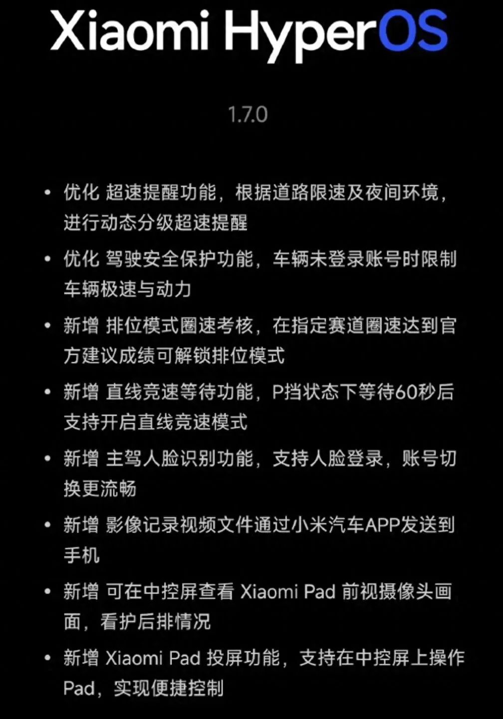 小米 SU7 Ultra 此次更新的 Xiaomi HyperOS 系统中,新增的 “排位模式圈速考核” 功能引发广泛讨论。根据更新日志,车主需在官方指定赛道完成计时圈速,且成绩优于标准线,才能解锁1548匹马力。此前,用户只需通过《驾驶安全注意事项》测试即可开启全部性能模式。