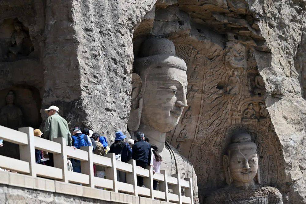 游客在山西大同云冈石窟游览。云冈石窟官微图