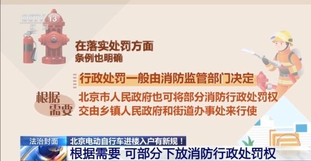 在落实处罚方面,条例也明确,行政处罚一般由消防监管部门决定;根据需要,北京市人民政府也可将部分消防行政处罚权,交由更贴近基层的乡镇人民政府和街道办事处来行使。