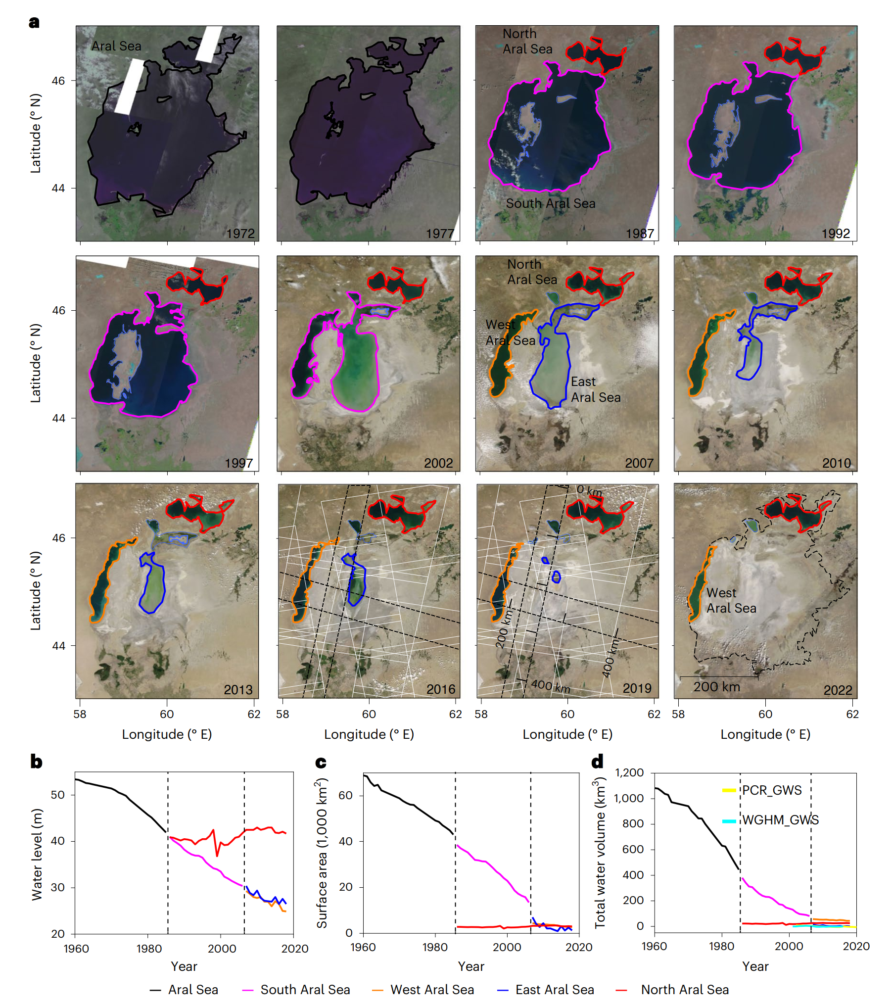 水文资料显示,从1960年到2018年,咸海的总体积减少了1013.69立方千米,按照蒸发的纯水计算,这导致了超过1万亿吨的地表质量消失。