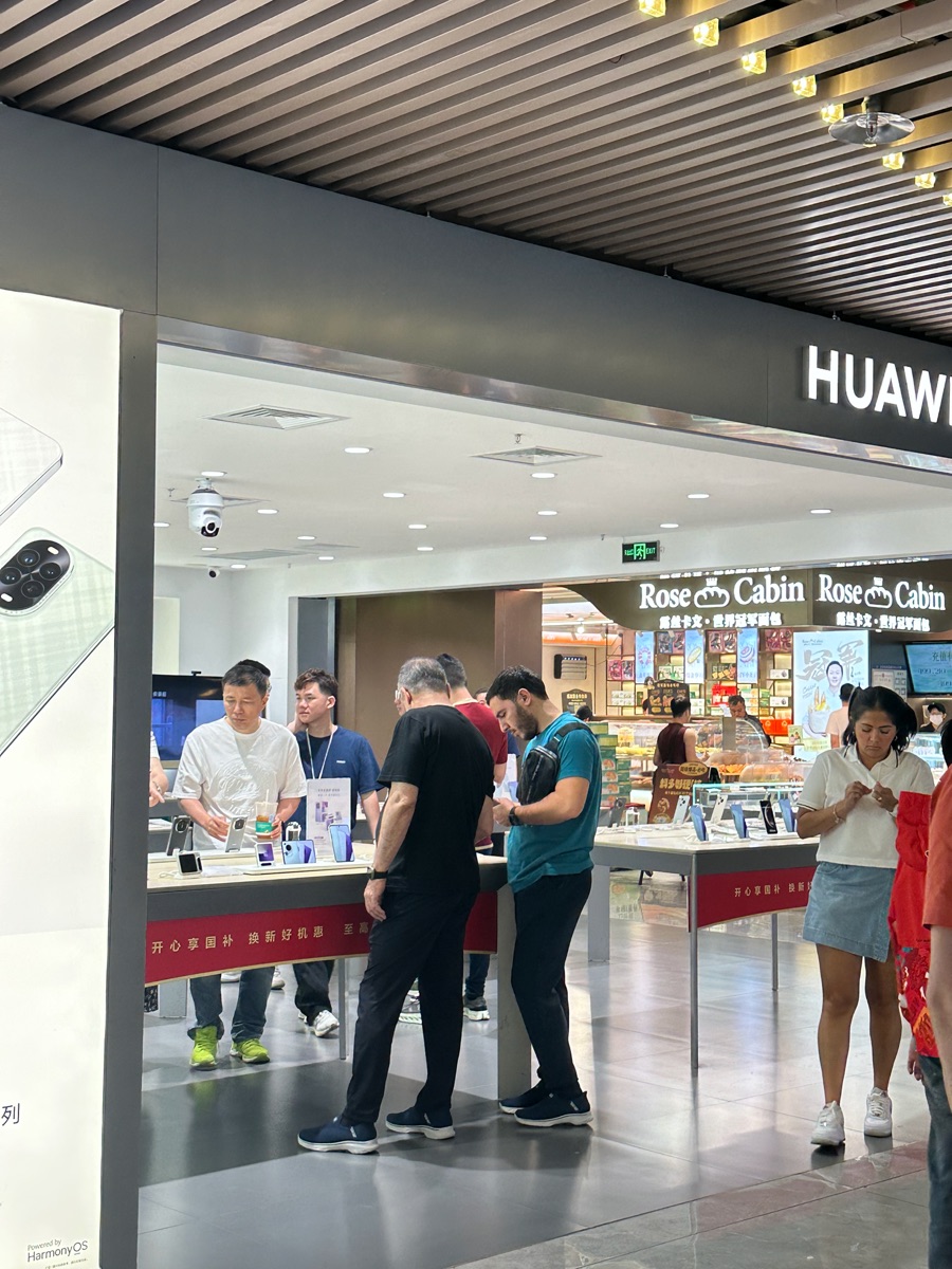 21世纪经济报道记者拍摄于广州,外国客人在华为店选购