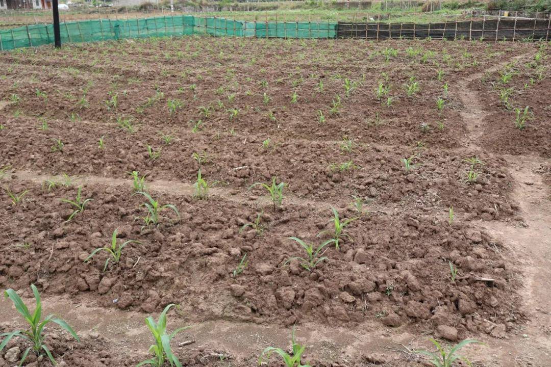 身材瘦小的杨女士边除草边比划着向记者介绍说,往年这个时候,玉米早就长到腰部这么高了,但现在的高度还不到她的膝盖高。这些玉米是她在今年清明节前后种下的。