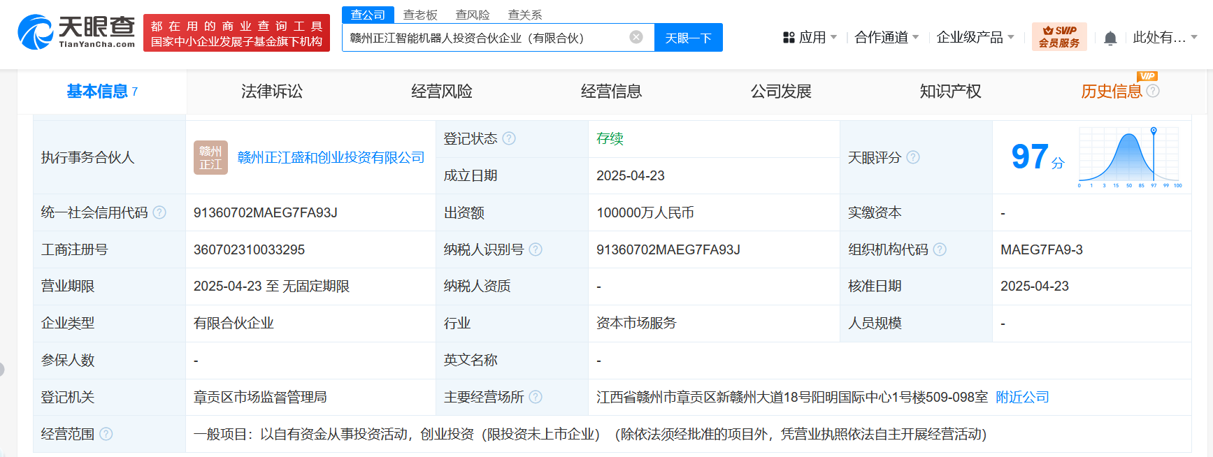 天眼查App显示,近日,赣州正江智能机器人投资合伙企业(有限合伙)成立,执行事务合伙人为赣州正江盛和创业投资有限公司,出资额10亿人民币,经营范围为以自有资金从事投资活动,创业投资。合伙人信息显示,该企业由赣州市现代产业引导股权基金(有限合伙)、赣州创新投资发展有限公司、青岛浦江奕成股权投资合伙企业(有限合伙)、赣州高歆产投控股有限公司等共同出资。