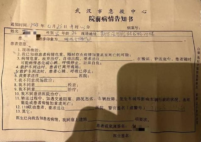 这名网友的评论区有数千条留言,不少疑似猿辅导员工留言批评公司加班严重,该网友回复多条留言补充了一些信息。在评论区,有其他疑似员工晒出一张武汉市急救中心院前病情告知书,显示26岁的李某在救护车到达时呼吸心跳已停止。告知书签署时间为23日上午9点43分,填写的处置地址信息,与猿辅导武汉公司办公地址和楼层相同。