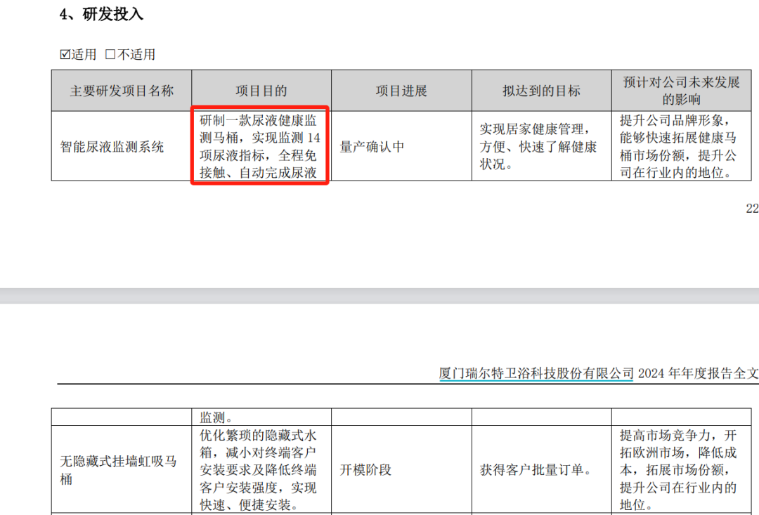 2024年,公司智能坐便器及盖板业务收入14.35亿元,占比超60%。另外,据2024年年报,公司正研制一款尿液健康监测马桶,实现监测14项尿液指标,全程免接触、自动完成尿液监测。目前正量产确认中。