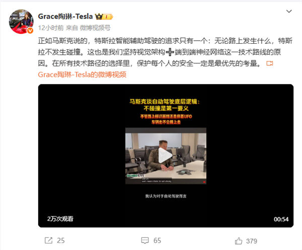 陶琳表示,正如马斯克说的,特斯拉智能辅助驾驶的追求只有一个:无论路上发生什么,特斯拉不发生碰撞。