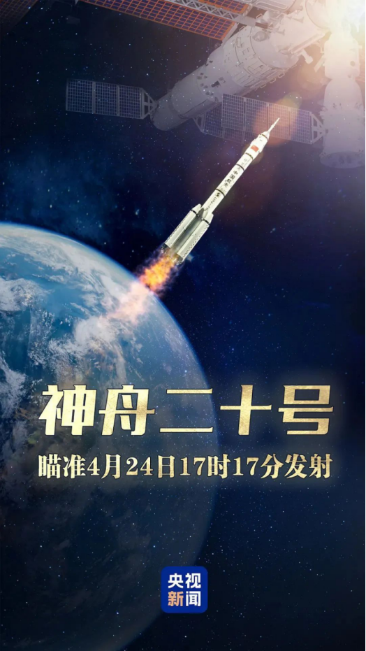 神舟二十号瞄准4月24日17时17分发射发言人介绍,经任务总指挥部研究决定,瞄准北京时间4月24日17时17分发射神舟二十号载人飞船。