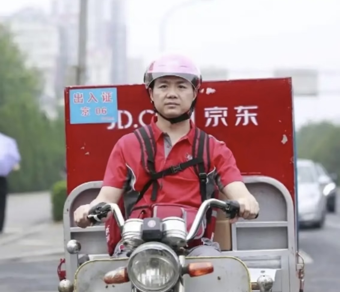 2014年6月18日,京东在美国上市后的第一个618店庆期间,刘强东也曾亲自披挂上阵,当了一回快递员。他从京东大屯配送站出发,骑着电动三轮车带着货物,前往用户所居住的小区进行送货。