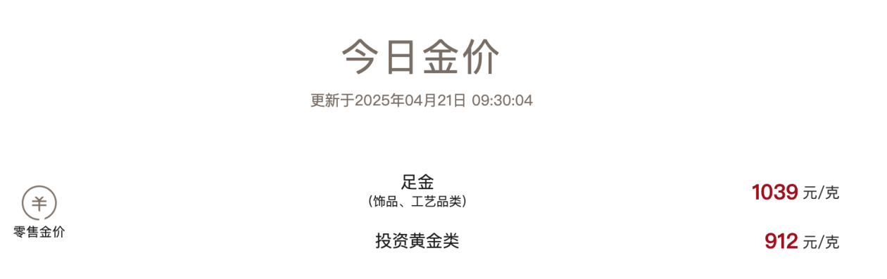 在零售端,各大珠宝品牌的首饰金价也纷纷上调。今日,周大福首饰金价为1039元/克,老庙黄金1038元/克,周生生首饰金价为1034元/克。