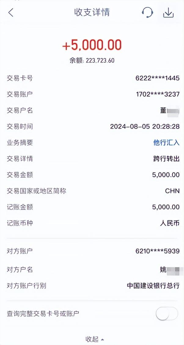 2025年4月20日,现代快报记者联系到董女士,她提供了多份通话录音,称这些是姚某某与董女士母亲、董女士本人就怀孕、流产的补偿进行讨论的录音。其中,一段录音是向董女士的母亲表示:“不管怎么样,我确实做得不对,我也不知道她不采取措施,就那一次她就怀孕了。”除录音外,董女士还提供了2份微信转账记录及1份银行转账记录,显示姚某某在2023年5月7日、2023年5月15日、2024年8月5日,分别向董女士转账10000元、30000元、5000元。