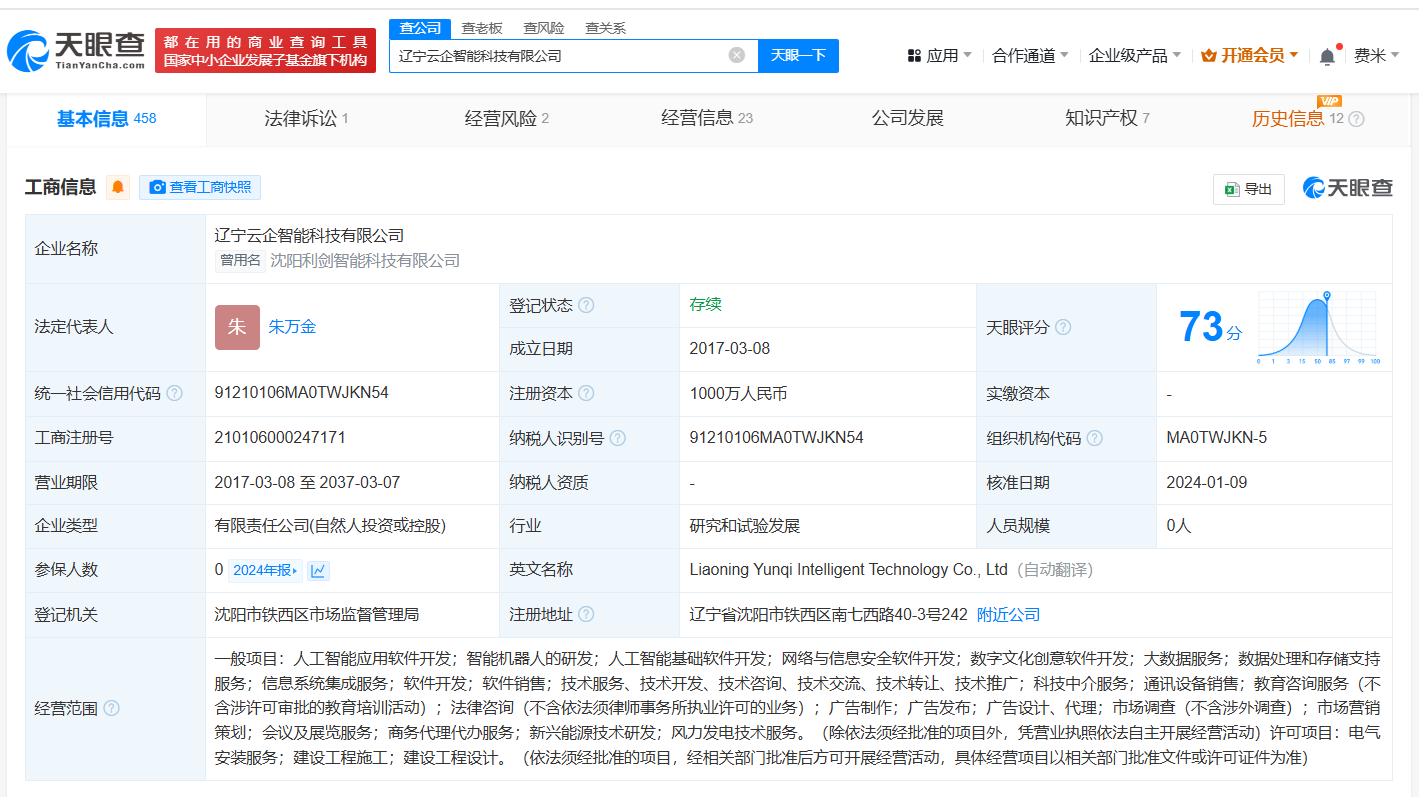 该公司成立于2017年3月,法定代表人为朱万金,注册资本1000万人民币,经营范围包括人工智能应用软件开发、智能机器人的研发、人工智能基础软件开发、网络与信息安全软件开发等,由朱万金、朱丽丽共同持股。据媒体此前报道,今年央视315曝光信息黑洞疯狂窃取个人隐私的问题,该公司被点名。