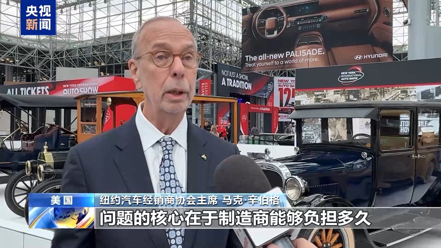 总台记者许弢:这里是2025年纽约国际车展的现场。在美国政府宣布对所有进口汽车征收25%关税的阴影下,这场本该展示技术创新与未来出行愿景的车展,却传递了出一份对市场前景的担忧。