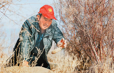 “红柳能把沙子压住,大芸能卖钱,用水量都不大。”麦麦提·麦提赛伊迪说,“去年收获几百公斤鲜大芸,纯收入差不多1万元。”大芸也叫肉苁蓉,多年生沙生植物,有较高药用价值。