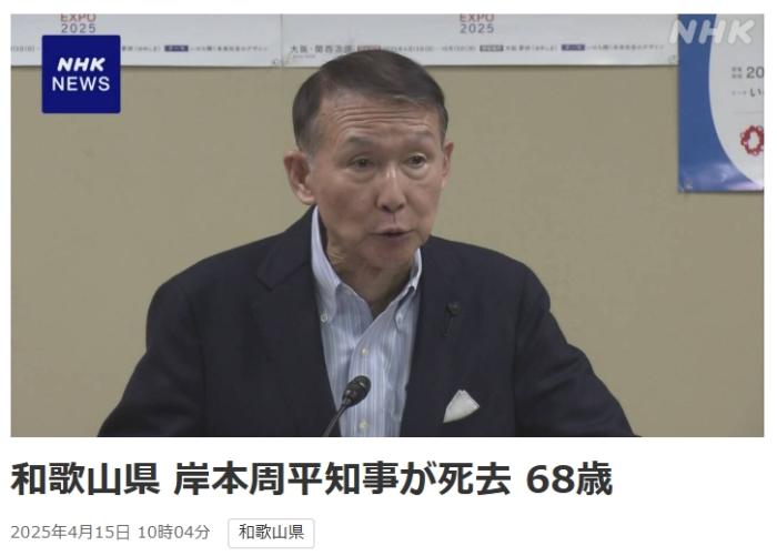 据日本广播协会(NHK)报道,当地时间15日,日本和歌山县知事岸本周平去世。一天前,他在位于和歌山市内的知事官邸被发现倒在地上,随后被送往医院。
