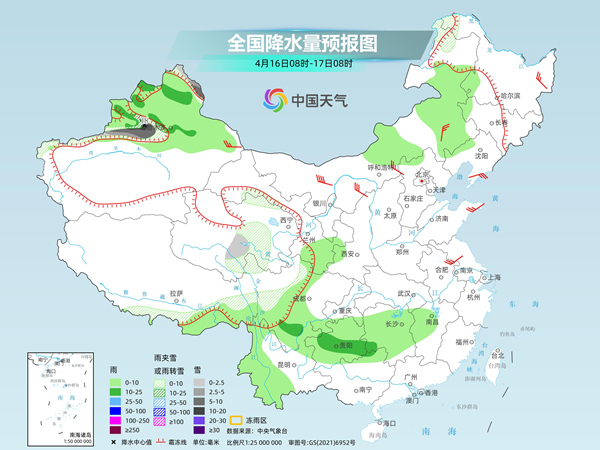 明天,新疆北部高海拔地区、内蒙古东北部、西藏东部和南部、青海东部和南部、川西高原等地部分地区有小到中雪或雨夹雪,其中,新疆北部高海拔地区有大到暴雪。新疆北部、内蒙古中东部、西藏东南部、甘肃南部、四川盆地西部、贵州大部、云南西部以及江南中西部等地部分地区有小雨,其中,新疆北部、四川南部、贵州中部、湖南西部等地部分地区有中雨。