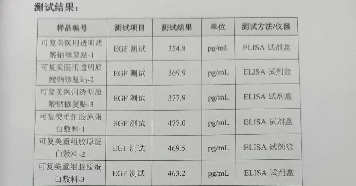 可复美还称,在获悉相关反馈后,其已立即启动全面自查程序,委托了两家专业检测机构分别采用两种检测方法对同批次产品进行独立检测,结果一致,均未检出���表皮生长因子成分。