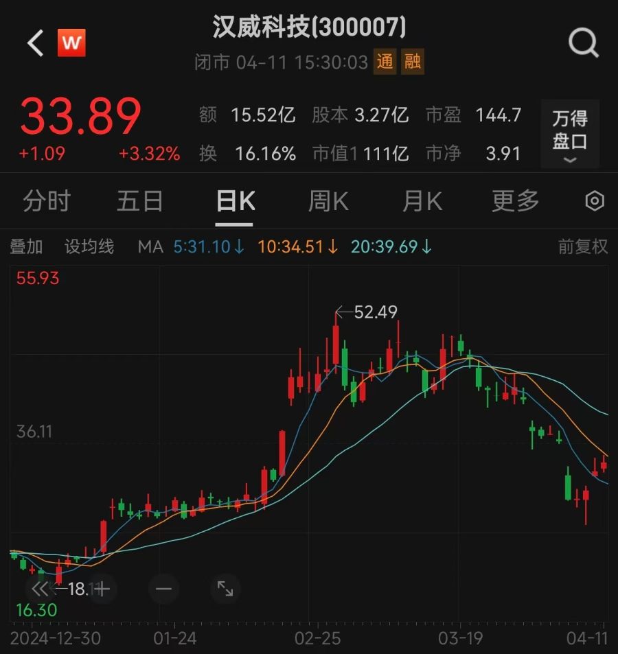 南财快讯记者注意到,因归属于人形机器人板块,汉威科技今年以来股价大涨,截至上周五(4月11日)收盘,年内累涨65.72%,总市值111亿元。