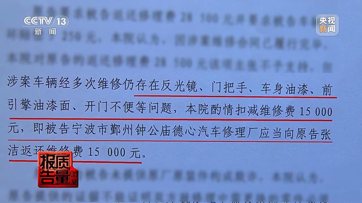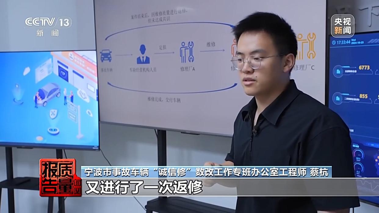 宁波市事故车辆“诚信修”数改工作专班办公室工程师 蔡杭:在修理厂并完成维修之后,他就直接把车子交付给了车主,车主发现了维修质量问题,又进行了一次返修。