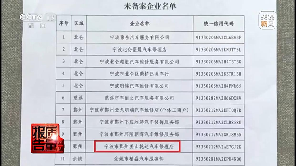 诚信修专班随即将这家维修厂列入了未备案企业名单,并下发了执法检查通知。