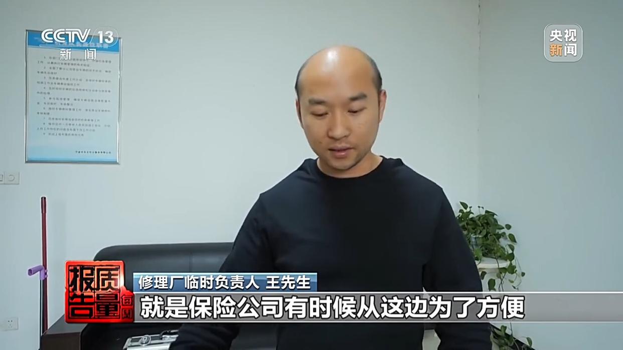 修理厂临时负责人 王先生:保险公司有时候从这边为了方便,类似一个前置中转站一样,稍微出个几百块钱或是多少钱出一下,然后必须有一个抬头。
