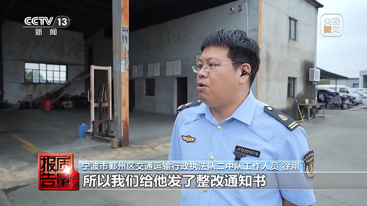 宁波市鄞州区交通运输行政执法队二中队工作人员 徐刚:未发现有维修行为,但是他工单上有单子,所以我们给他发了整改通知书。