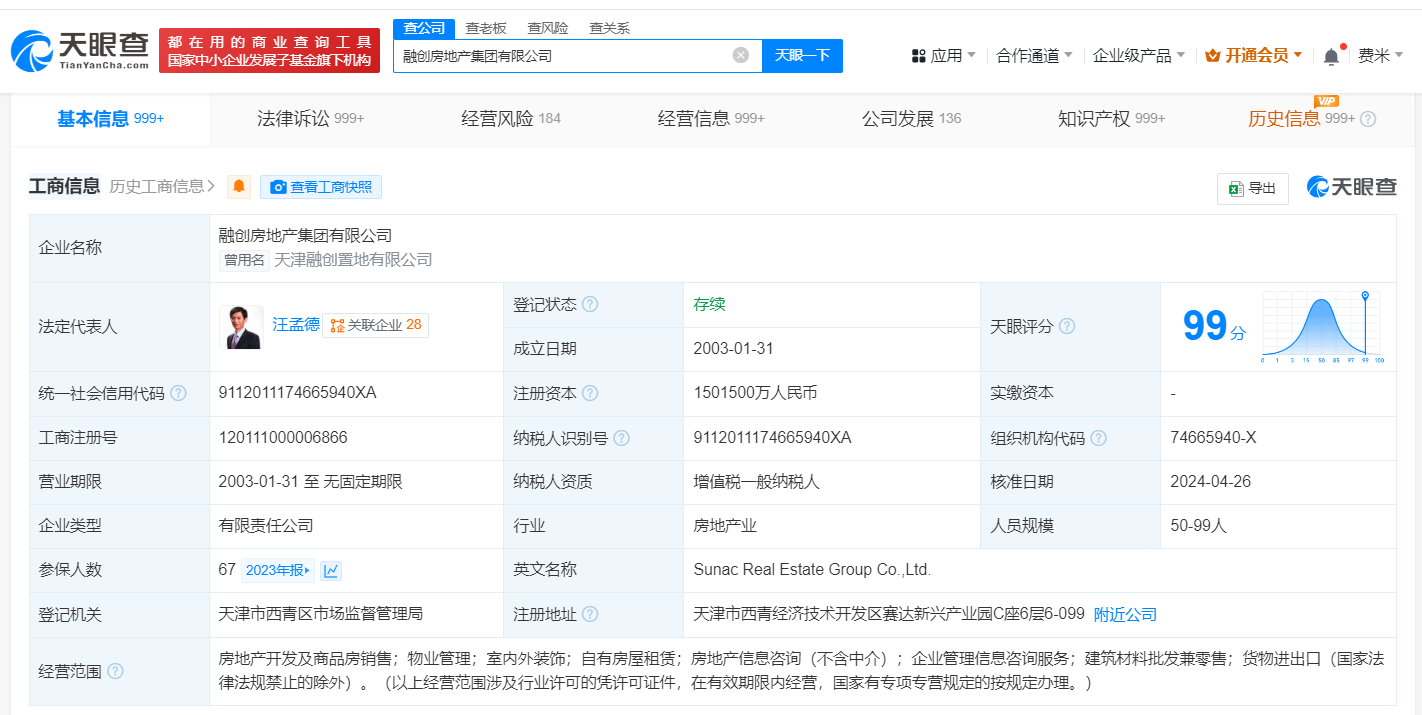 天眼查法律诉讼信息显示,4月10日,融创房地产集团有限公司新增7条被执行人信息,执行标的合计16.5亿余元,涉及票据追索权纠纷等案件,部分案件被执行人还包括环球融创会展文旅集团有限公司、广州万达文化旅游城投资有限公司等,执行法院包括广州市花都区人民法院、重庆市第五中级人民法院等。