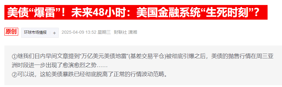 这不免令许多业内人士好奇:美国政府的关税暂缓行动,是否在很大程度上是为了“救美债”?