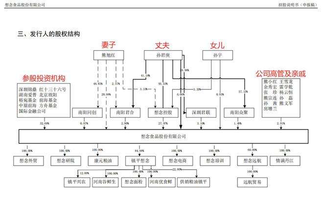 实际上,想念食品是成立于2008年的河南地区头部面食品牌,由孙君庚、熊旭红夫妇创立,不论是从股权结构还是经营模式都存在明显的家族企业特征。