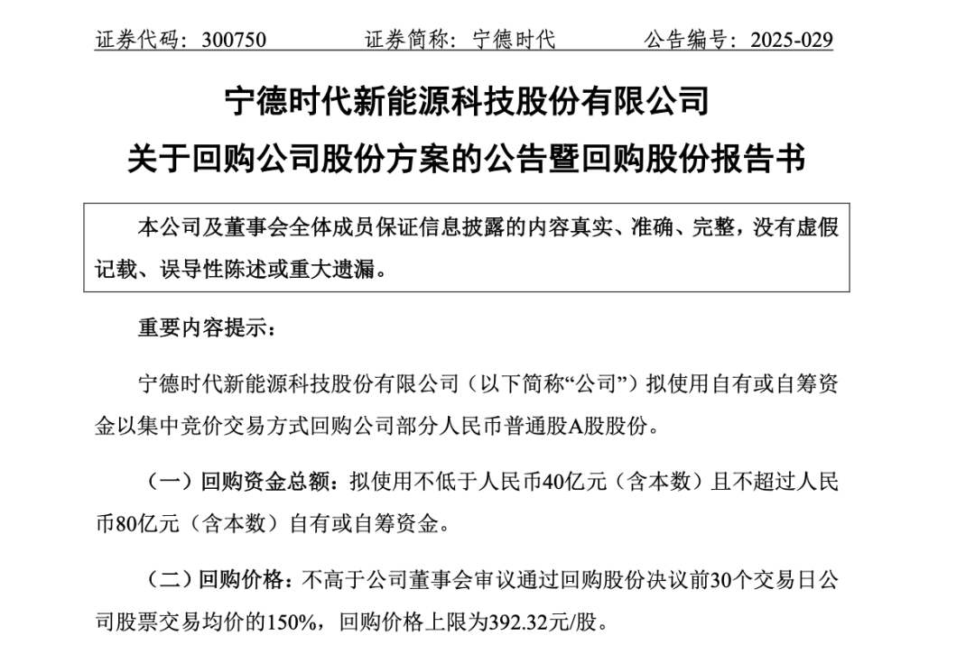 此外,4月7日晚间,宁德时代公告,公司拟使用不低于40亿元且不超过80亿元自有或自筹资金以集中竞价交易方式回购部分股份,并在未来适宜时机用于股权激励计划或员工持股计划。