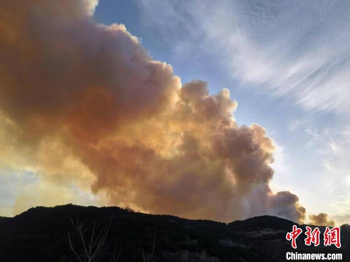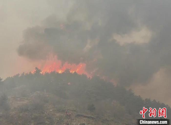 6日16时许,同样还是在国家消防救援局山西机动队伍临时驻地附近约1公里处,因风力较大引发新的火点,一座山头上油松燃烧腾起巨大火苗,浓烟翻滚。