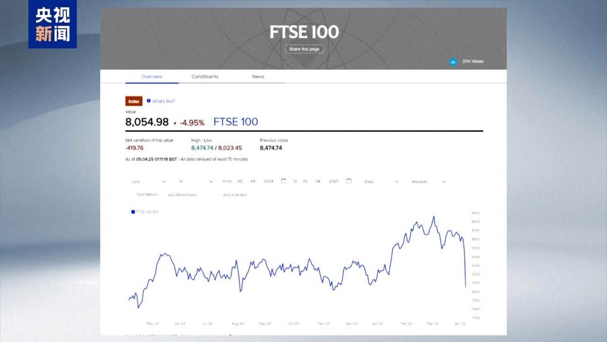 总台记者 陈林聪:英国政府已经于3日宣布,启动为期一个月的对美国加征报复性关税的咨询程序。然而就在第二天,英国股市便遭遇了5年以来的最大单日跌幅,直接反映投资者对英国政府态度的不满。英国政府政策“慢半拍”的动作与市场的迅速而剧烈的反应形成了鲜明对比。