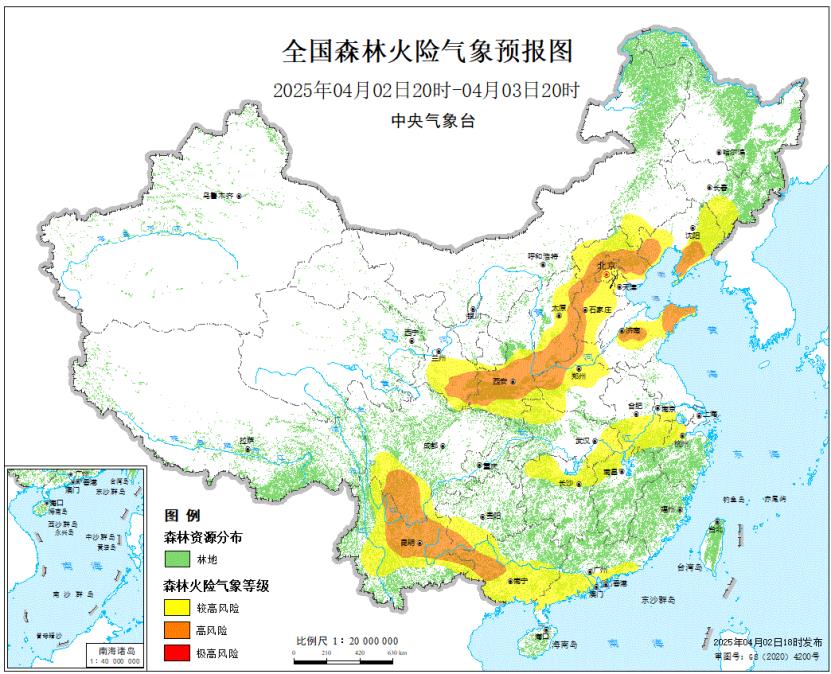 昨日,中东部大部地区最高气温达到20~25℃,未来三天,受冷空气影响,北方地区风力较大,气温有小幅波动,公众需注意防风;另外,北方和西南部分地区的森林火险气象等级高,请各有关单位严加防范,加强火源管理,确保林区安全。