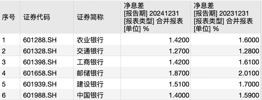 银行员工的薪酬与经营情况密切相关。随着银行息差不断收窄,银行整体盈利能力有所下降,降薪也随之而来。以六大国有行为例,2024年6家银行的净息差则均有不同程度的下降。