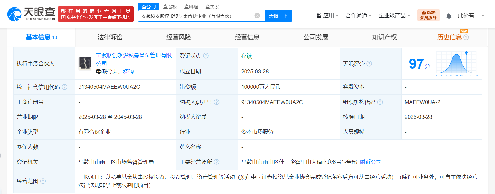 天眼查App显示,近日,安徽浚安股权投资基金合伙企业(有限合伙)成立,执行事务合伙人为宁波联创永浚私募基金管理有限公司,出资额10亿人民币,经营范围为以私募基金从事股权投资、投资管理、资产管理等活动。合伙人信息显示,该基金由安徽省人工智能主题投资基金合伙企业(有限合伙)、安徽两江新兴产业股权投资基金合伙企业(有限合伙)、商汤科技旗下宁波市商毅软件有限公司等共同持股。