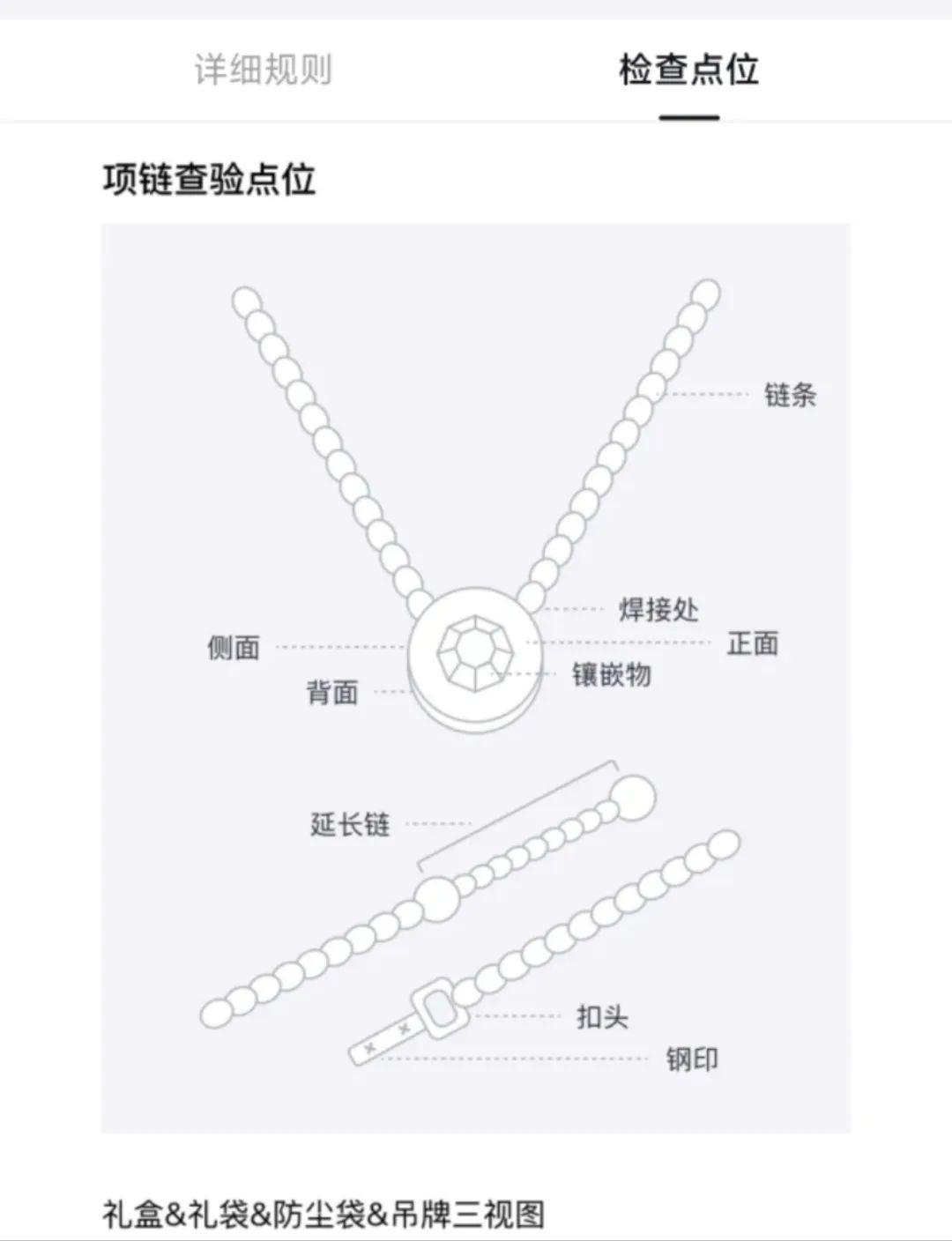 得物APP公示的项链检查点位。图源 | 得物APP