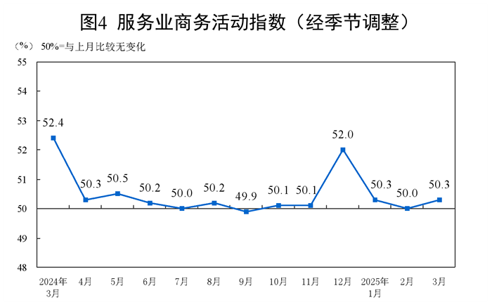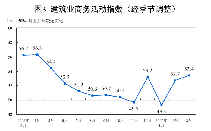 分行业看,建筑业商务活动指数为53.4%,比上月上升0.7个百分点;服务业商务活动指数为50.3%,比上月上升0.3个百分点。从行业看,水上运输、航空运输、邮政、电信广播电视及卫星传输服务、货币金融服务等行业商务活动指数均位于55.0%以上较高景气区间;餐饮、生态保护及公共设施管理、文化体育娱乐等行业商务活动指数均低于临界点。