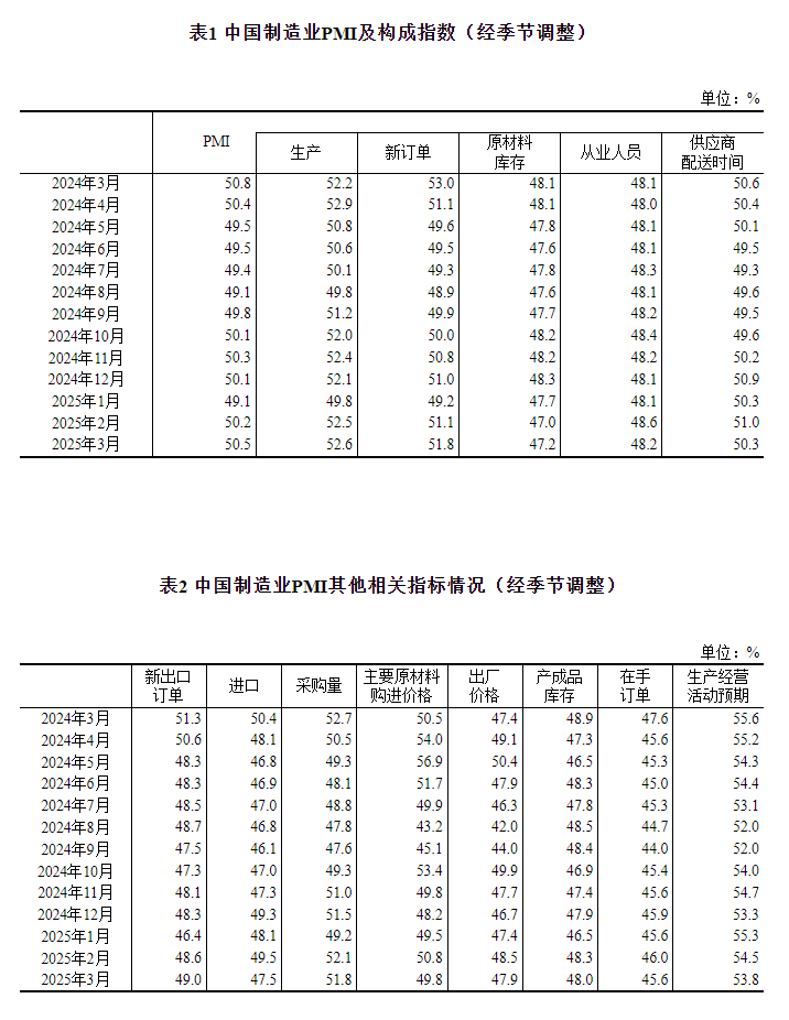 3月份,制造业采购经理指数(PMI)为50.5%,比上月上升0.3个百分点,制造业景气水平继续回升。