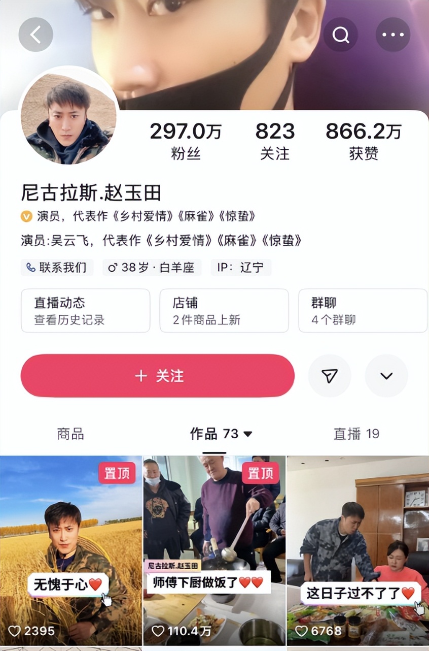 在吴云飞带货账号目前有约300万粉丝,置顶作品包含赵本山在做饭的视频。