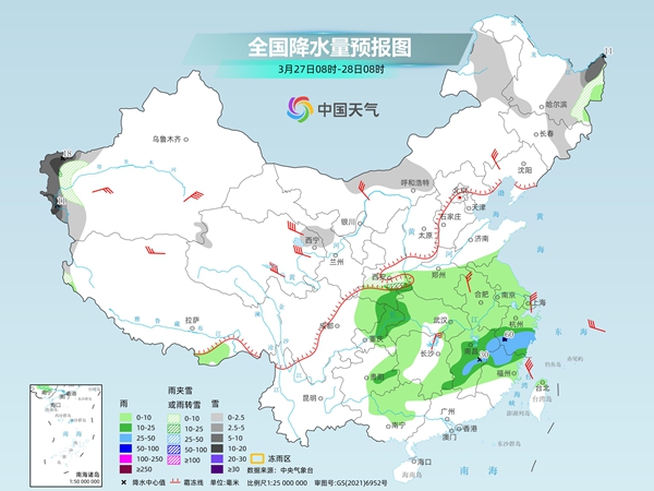 今天(3月27日)至30日,寒潮将继续影响我国。今天起,中东部开启气温大跳水,其中南方多地降温前后冷暖差异巨大,像是杭州、武汉,昨天最高气温高达34℃,今天起气温就将开始“滑坡“,周末前后或再次感受冬日寒意,公众需及时增衣保暖。此外,今天至30日南方将持续有大范围阴雨,华北、东北部分地区今明天有降雪,公众请注意防滑。